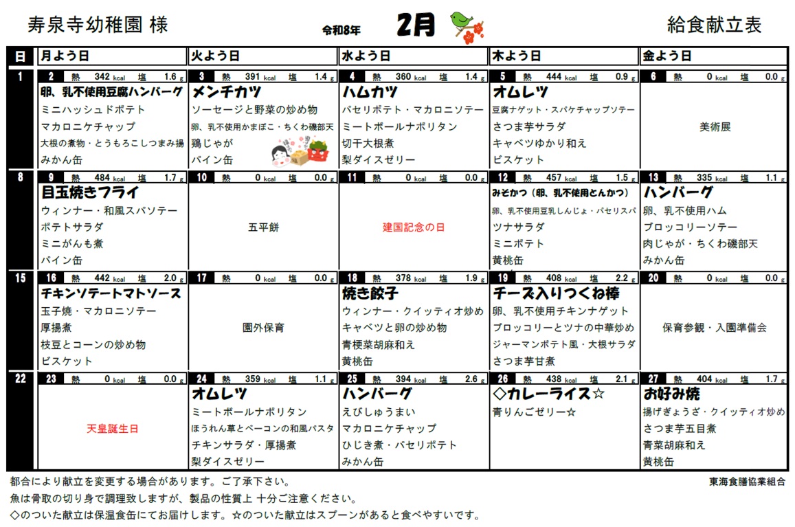 今月のメニュー