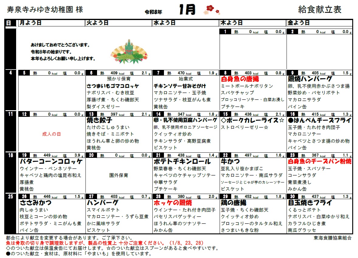 1月のメニュー