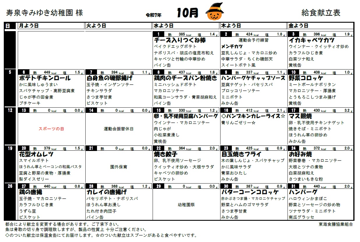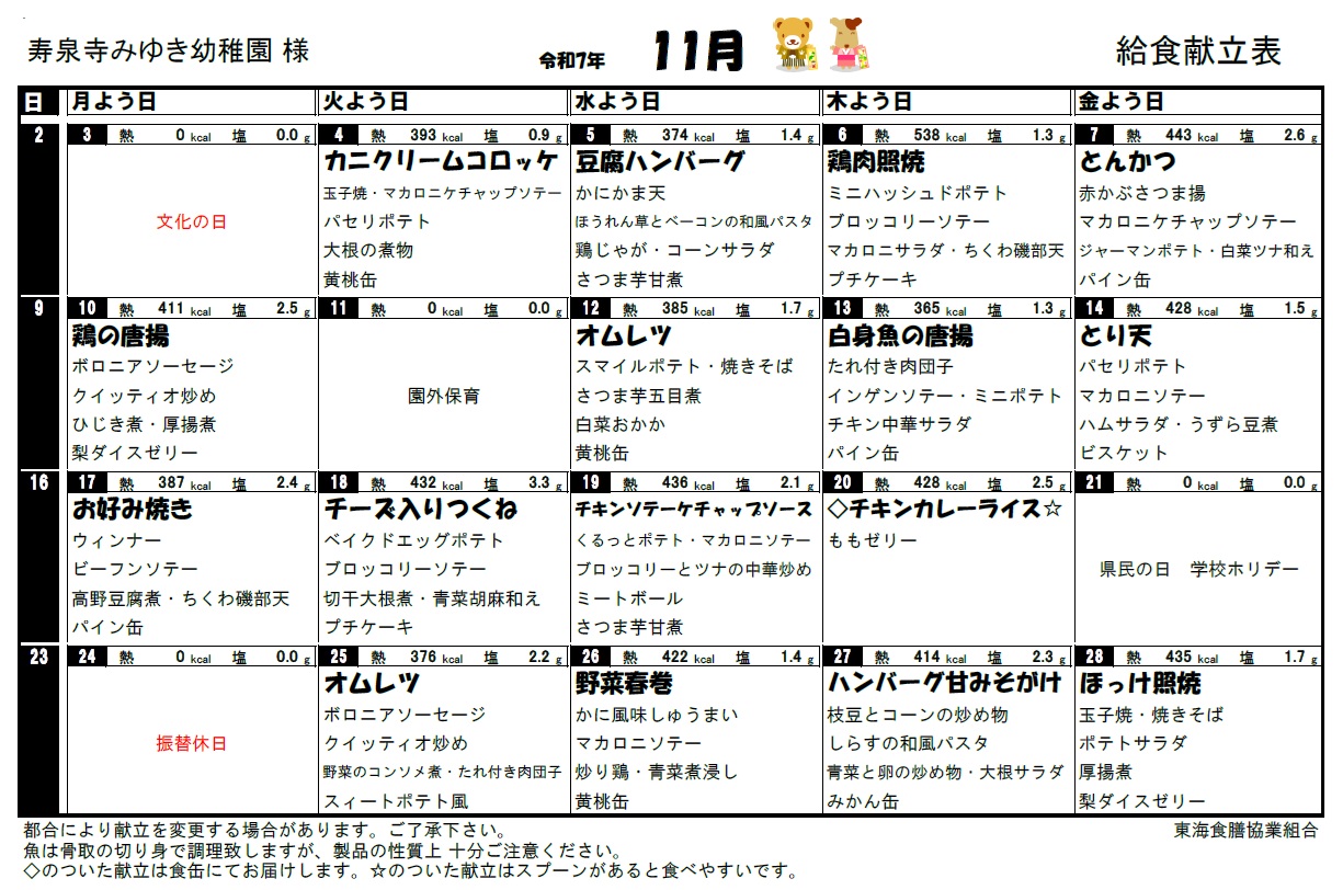 11月のメニュー
